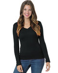 Bayside Ladies' USA Made Long-Sleeve Deep V-Neck T-Shirt BA3415